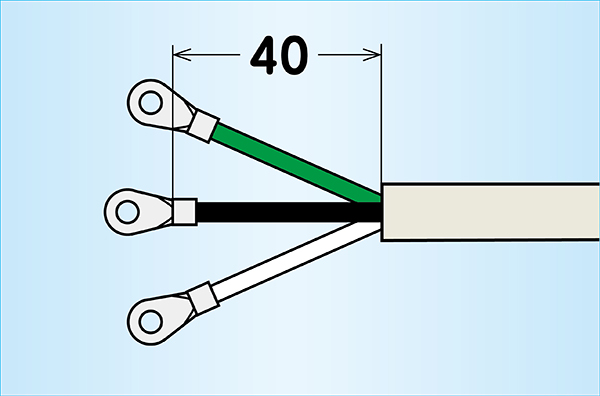 結線する3本の心線の端末加工寸法(ストリップ長)をすべて同一寸法(40mm)としたことで、電線加工の省力化を図りました。