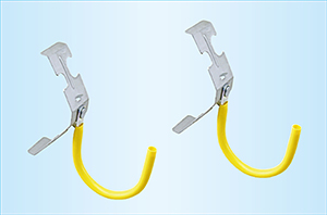 天井や天井近くに設置されたコンセントにプラグを挿した際、プラグから垂れ下がる電線をフック部に引っかけることで、コンセントやプラグにかかる荷重を低減させることができる器具です。