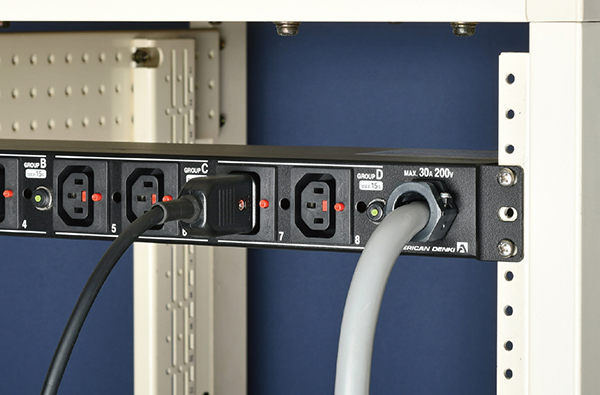 さし込み口2個で1つのグループとし、それぞれのグループで合計15Aまで、総合計で30Aまで使用可能です。また容易に電源管理を行えるように、各グループにはAからDまでのアルファベット表記を本体に施しています。